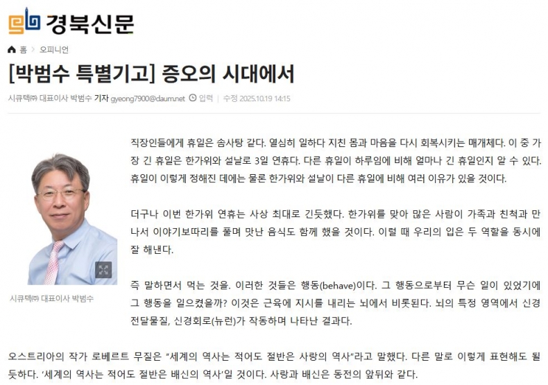 관련 기사 링크 경북신문: [특별기고] 증오의 시대에서 |